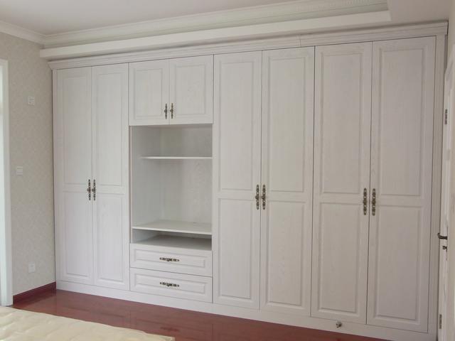 盡管移門(mén)柜做法常見(jiàn),但開(kāi)門(mén)柜一直有它的產(chǎn)品,不知大家注意到?jīng)]有,家俬市場(chǎng)上成品衣柜清一色全是平開(kāi)門(mén),高度在2000~2200mm之間。所以這個(gè)高度是非常尷尬的,因?yàn)橐话惴孔訉痈咴?800~3000mm,去掉地籠、地板、部分吊頂之后都有2600mm左右,頂部留出600~400mm的空間,實(shí)用性減弱、影響了美觀度。這里推薦我們定做家具衣柜,最大優(yōu)點(diǎn)是尺寸能夠完全根據(jù)您的需求。做法有兩種:木工做,選材為杉木集成板;定制衣柜,選擇衣柜時(shí)尚家具定制企業(yè)。