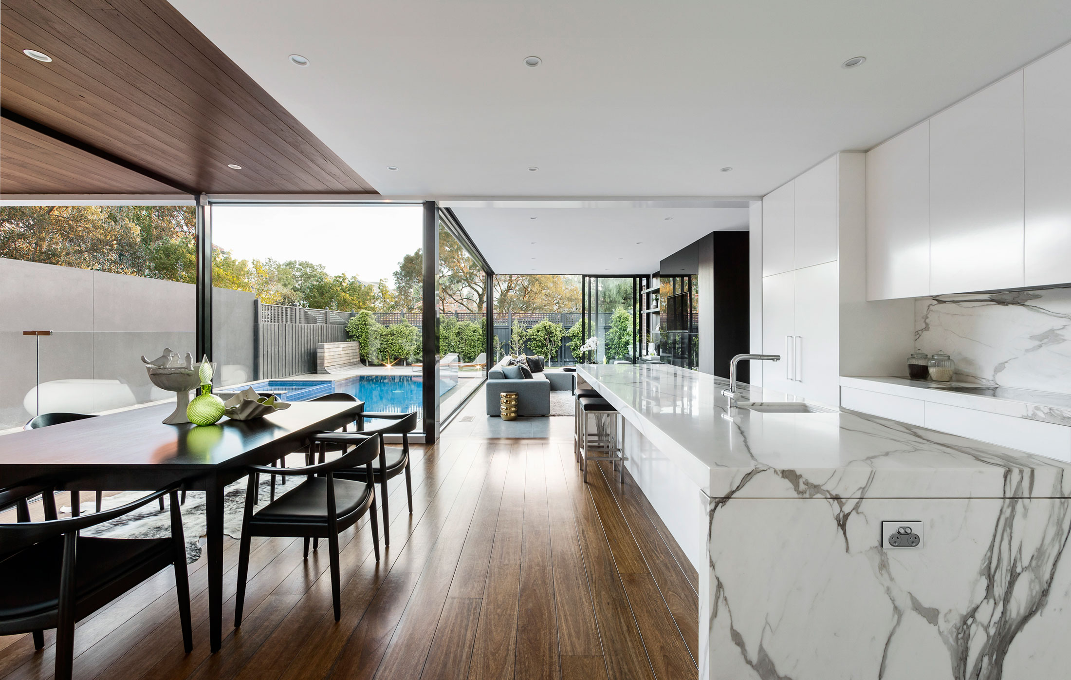開(kāi)放式廚房對(duì)廚房與客廳的統(tǒng)一度要求比較高,包括裝修材質(zhì)、色調(diào)等,如果沒(méi)有統(tǒng)一起來(lái)比較容易造成格格不入的斷層感,這對(duì)業(yè)主及設(shè)計(jì)師的審美有較高的要求。