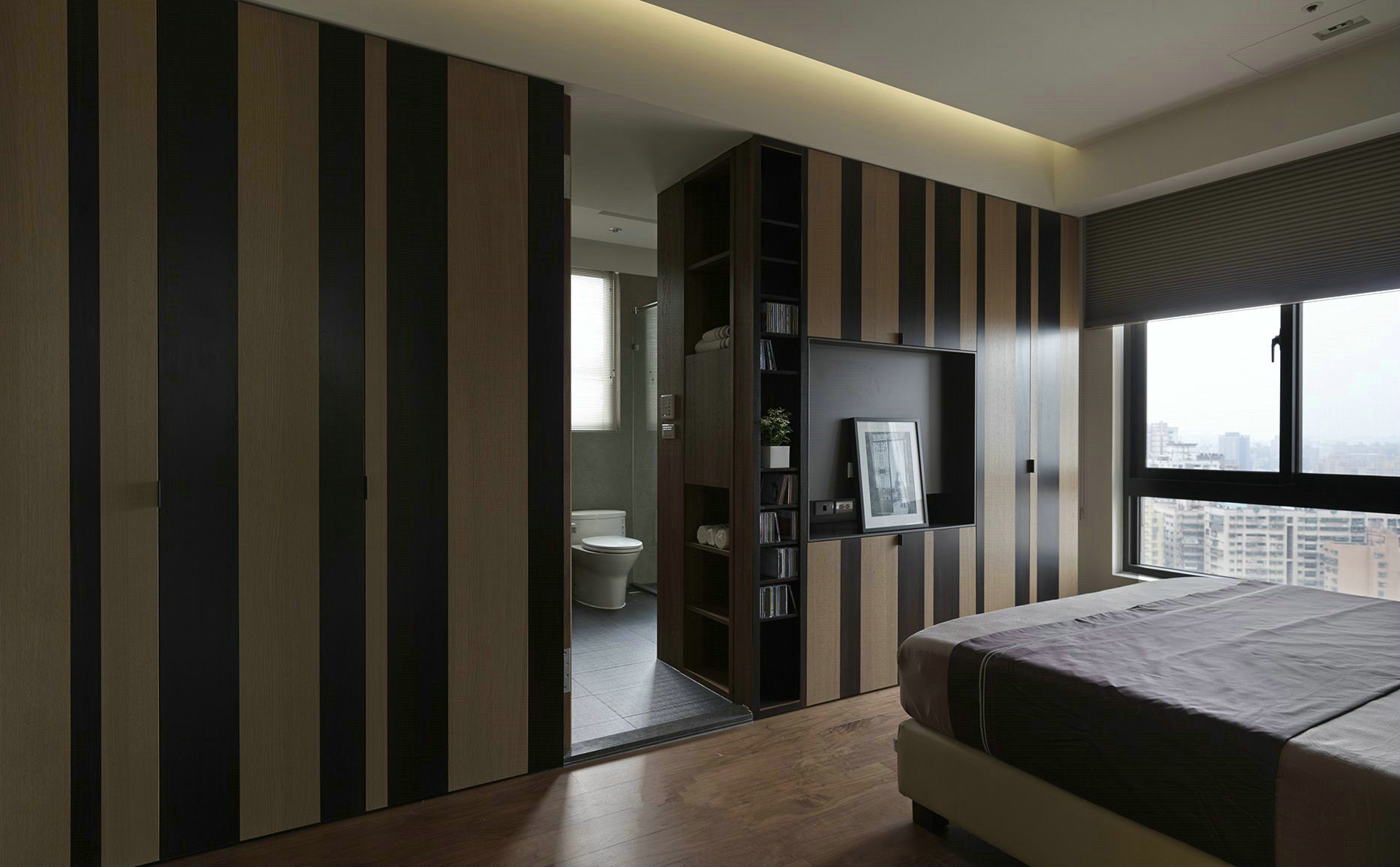 一般采用隱形門將臥室和書房隔開,使得臥室和書房起到隔音效果,互不影響。臥室和衛(wèi)生間的隱形門可以用衣柜隱形。
