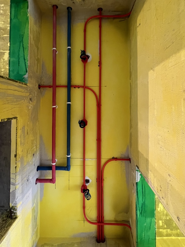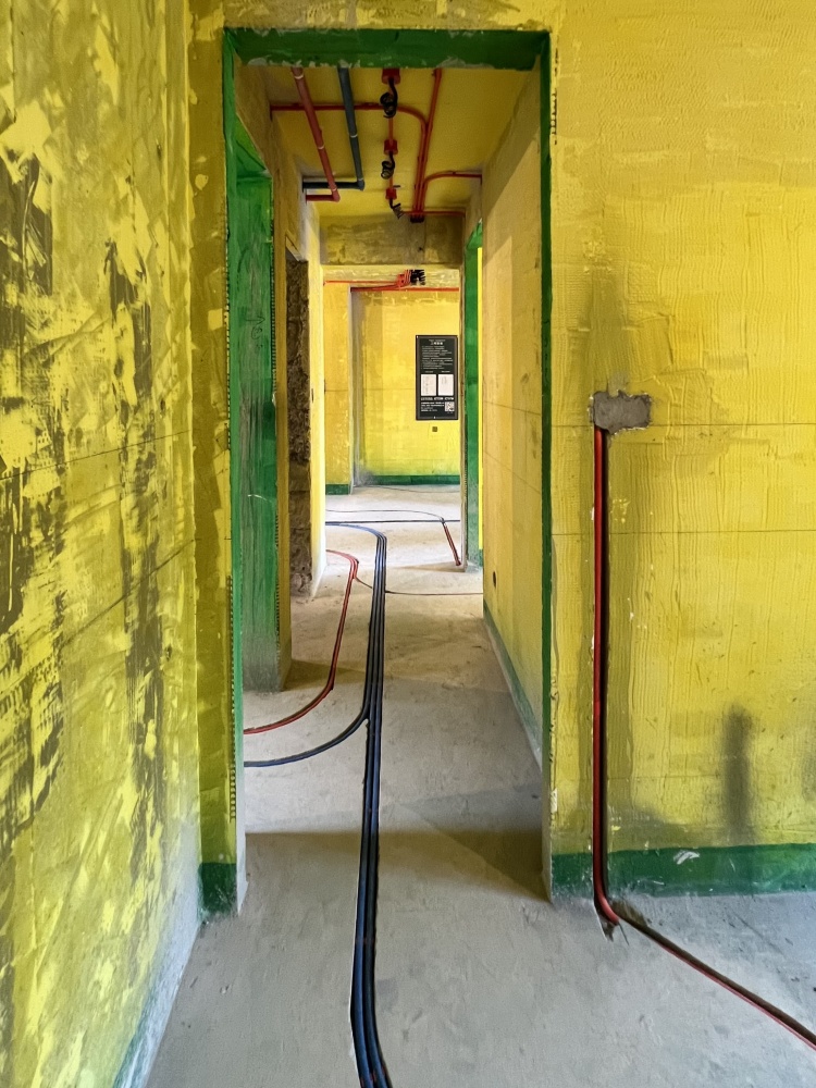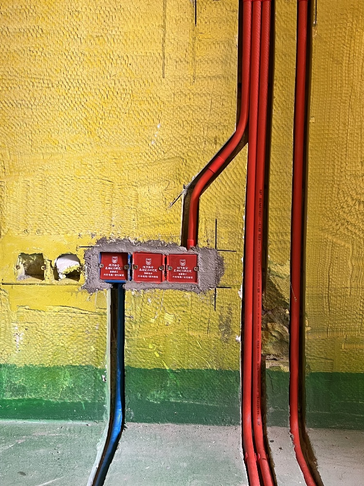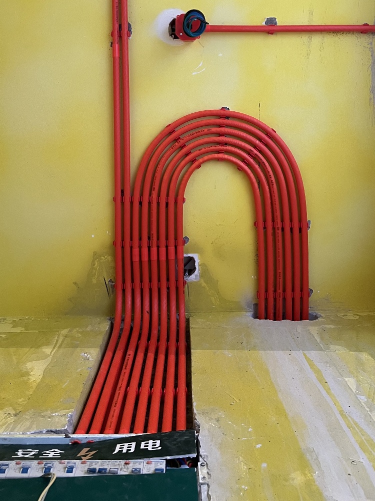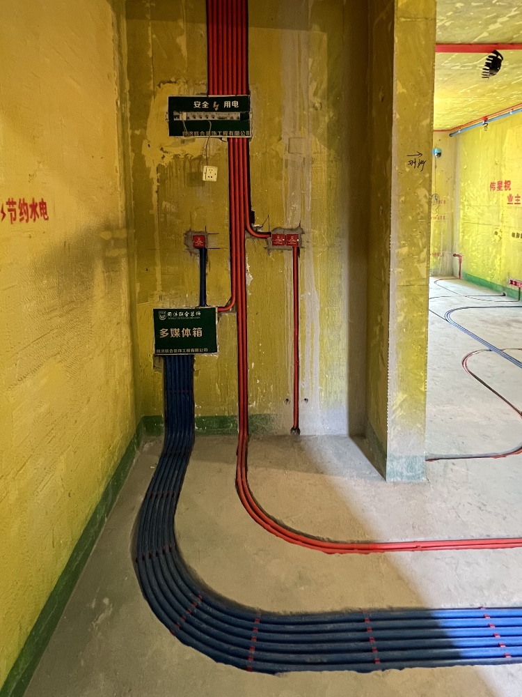 現(xiàn)場(chǎng)呈現(xiàn)的水電走線,嚴(yán)格遵循 “橫平豎直” 施工規(guī)范,墻面與地面管線排布規(guī)整有序。紅色強(qiáng)電、藍(lán)色弱電及功能性管道,依據(jù)電路、水路特性分區(qū)鋪設(shè),從根源杜絕信號(hào)干擾與安全隱患。線路走向深度契合空間功能需求,既為家具擺放、后期施工(如瓷磚鋪貼、吊頂安裝 )預(yù)留精準(zhǔn)坐標(biāo),更通過反復(fù)模擬推演,實(shí)現(xiàn)空間利用與使用便捷性的最優(yōu)平衡,讓隱蔽工程的規(guī)劃智慧清晰可 “循”。