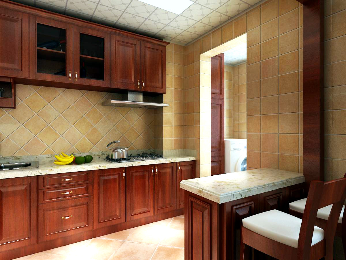 最后一款中式實木櫥柜效果圖展示的是一個開放式的廚房,選擇的實木材料更加的貼近大自然,淺棕色的櫥柜和顏色相近的地板交相輝映,整體布局看起來更加的和諧統(tǒng)一。大理石的臺面讓這款櫥柜更加的彰顯高貴,整個給人以低調(diào)的奢華之感,給人的視覺帶來美的享受,讓整個廚房的空間看起來尤其的精致