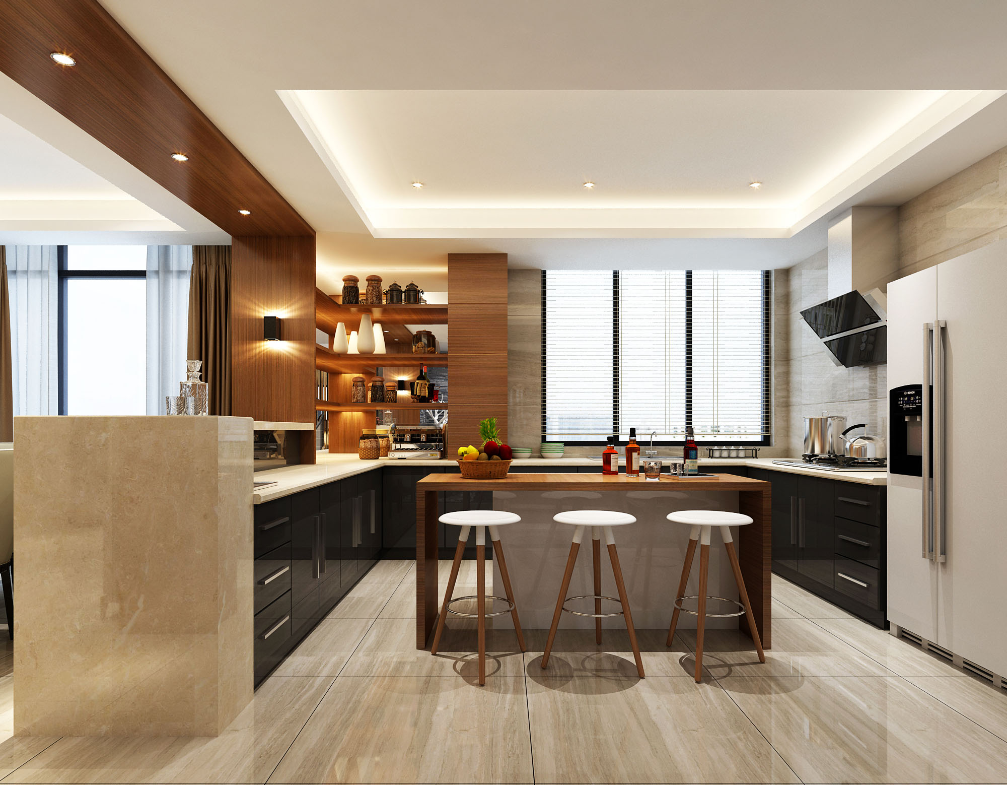 開(kāi)放式廚房是指巧妙利用空間,將實(shí)用美觀的餐桌與廚房緊密相連,形成一個(gè)開(kāi)放式的烹飪就餐空間。開(kāi)放式廚房營(yíng)造出溫馨的就餐環(huán)境,讓居家生活的貼心快樂(lè)從清早開(kāi)始就伴隨全家人。中等戶(hù)型的家庭會(huì)根據(jù)空間的特點(diǎn)來(lái)放置各種結(jié)構(gòu)的櫥柜,無(wú)論是島型操作區(qū),或是L型操作區(qū)、方正空間常用的U型操作區(qū)、具備分隔空間功能的T型操作區(qū),都能毫不費(fèi)力地開(kāi)辟出擺放餐桌的位置。