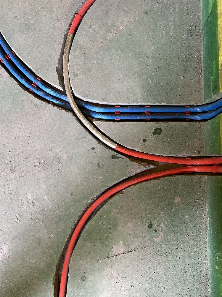 現(xiàn)場(chǎng)呈現(xiàn)的水電走線,嚴(yán)格遵循 “橫平豎直” 施工規(guī)范,墻面與地面管線排布規(guī)整有序。紅色強(qiáng)電、藍(lán)色弱電及功能性管道,依據(jù)電路、水路特性分區(qū)鋪設(shè),從根源杜絕信號(hào)干擾與安全隱患。線路走向深度契合空間功能需求,既為家具擺放、后期施工(如瓷磚鋪貼、吊頂安裝 )預(yù)留精準(zhǔn)坐標(biāo),更通過反復(fù)模擬推演,實(shí)現(xiàn)空間利用與使用便捷性的最優(yōu)平衡,讓隱蔽工程的規(guī)劃智慧清晰可 “循”。