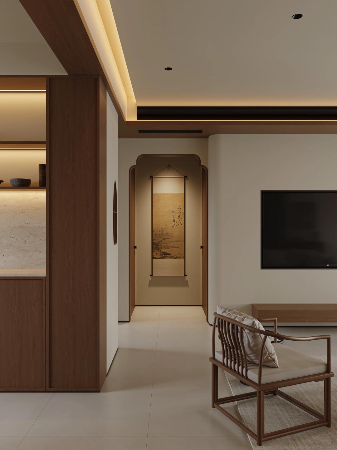 軟裝搭配盡顯巧思,木質(zhì)家具線條簡(jiǎn)潔流暢,承襲宋式家具的簡(jiǎn)約風(fēng)骨,卻又貼合現(xiàn)代使用需求;